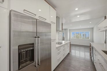 The spacious, bright, and airy living room opens to a private balcony, perfect for morning coffee, evening relaxation, or stargazing. An open-concept layout seamlessly connects the living room, dining area and kitchen, creating an inviting space for both everyday living and entertaining. The updated kitchen features stainless steel appliances, quartz countertops and ample cabinetry, offering both style and functionality.